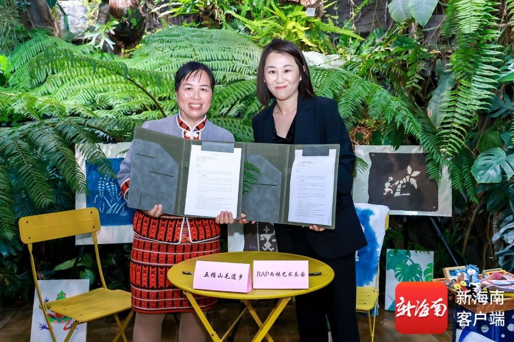 活动现场,RAP雨林艺术乐园与毛道乡植物染坊、藤编厂代表签订长期展销合作协议,以“五指山雨林艺术北京会客厅”常态化展示展销,为黎族手工艺品搭建稳定的首都市场渠道,助力阿姐们持续增收致富。据了解,北京798艺术区是国际知名艺术目的地与首都文化名片,汇聚多国文化外交机构与顶级艺术资源。RAP雨林艺术乐园位于798核心区域,是以热带雨林艺术文创为主题的体验空间,具备强大的文创展示、推广与市场转化能力。
